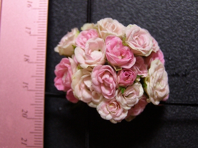 花そのもののリアリティとは別のところで、この固まり具合は、なんかリボンで作ったバラをちみちみみちみちと貼り合わせたみたいだ。